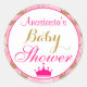 Die Prinzessin krönen und hübsche Rosa und Gold Glitzer kront funkelnd Baby Shower Klassiker rund Aufkleber. Auf dem Aufkleber befindet sich auch eine heiß-rosa Prinzessin-Krone/ Tiara und das elegante, heiß-rosa Schreiben. Sie können einfach den Namen Ihrer Wahl hinzufügen und die Farbe und den Schriftart ändern, indem Sie die Option anpassen!