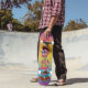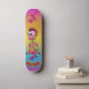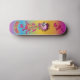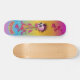 Niedlicher rosa Schädel mit mohaw, Gitarre und Herzen mit GIRLY PUNKtext auf einem bunten Hintergrund.