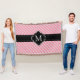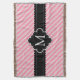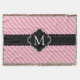 Girly und elegantes rosa diagonales Streifenmuster mit mit schickem schwarzem Fahnenrahmenentwurf in der Mitte für Ihre kundengebundene Monogramminitiale.