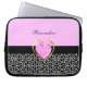 Eine girly Schwarzweiss-Giraffendruck Laptop-Hülse 10 Zoll mit einem niedlichen Druckrosa und einem Goldherzen, das Prinzessin sagt. Personifizieren Sie, indem Sie Ihren Namen addieren. Vervollkommnen Sie für das stilvolle und modische jugendlich Mädchen.