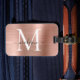 Girly Rose Gold Brushed Metal Monogram Script Gepäckanhänger