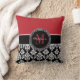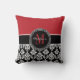 Schwarzes Damast-rotes Monogramm-personalisiertes Kissen. Entwurf durch Elke Clarke ©. Fertigen Sie mit Ihrem Namen und Monogramm besonders an. Ändern Sie die Hintergrundfarbe und Monogrammfarbe auch, wenn Sie Ihr Wurfskissen vollständig personifizieren mögen, um Ihre Schlafzimmerfarben zusammenzubringen. Ein großes Geschenk für Teenager und Mammen.
