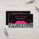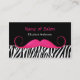Verbreiten Sie das Wort über Ihr Chic und stilvolles neues Friseursalon- und Schönheitswohnzimmer mit diesen stilvollen und modischen rosa und schwarzen Zebradruck-Mode-Visitenkarten mit einem girly Pinkschnurrbart. Personifizieren Sie, indem Sie den Namen des Beautician hinzufügen.