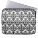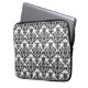 Girly Schwarz-weißes Blumendamast-Muster Laptopschutzhülle