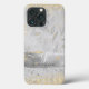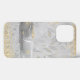 "Girly Silver Gold Glitzer Jewels w Script Initials und Ihr Name iPhone 13 Case." Eleganter Glitz und Glam Handy Gehäuse, die mit silberfarbenen Glitzer funkeln Pinselstrich gepaart mit Schichten von weißem Diamantstaub und Juwelen. Ein Blatt-Grün-Muster in Weich-Silber-Grau wird durch einen Aquarell-Spritzer und Pinselstrich ergänzt, die grafisch in goldenen Glitzer gestaltet wurden. Grafisch entworfen von Audrey Jeanne Roberts, international lizenzierter Künstlerin, Copyright.