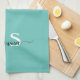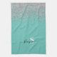 Girly Silver und Aquamarin Monogram Aqua Sparkle Geschirrtuch