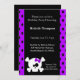 Weißer Schädel Geburtstagseinladungen mit Schädel- und Kreuz-Grafik. Lila und schwarzer gepunkteter Hintergrund, der dem lila Bug des Schädels entspricht. Anpassen mit Ihren Party.delightfuldoodles