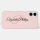 Dieses Gehäuse verfügt über einen mickrigen Hintergrund mit schwarzem Skriptnamen und rosa Anfangsbuchstaben. Personalisieren Sie die Textfelder, entfernen Sie jeden Text oder klicken Sie auf Anpassen, um den gewünschten Schriftstil, die gewünschte Schriftgröße und Farbe auszuwählen.