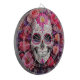Ein skurriler Mix aus lebhaften Farben und zarten Blumenmustern schmückt diesen Zuckerschädel, der eine spielerische, aber elegante Essenz vereint. Die aufwändigen Details unterstreichen den femininen Charme mit sanften Farbtönen in Rosa und Lilie, die die Schönheit des Ortes noch verstärken. Dieses Stück zelebriert Leben und Individualität, verbindet traditionelle Motive mit einer modernen, mädchenhaften Drehung, die es wirklich einzigartig macht.