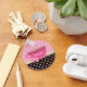 Ein gürtelrosa und braun gestrichener Polka-Dot-Schlüsselanhänger mit einem niedlich rosa Teakup mit einem trendigen Herzrand und einem hübschen rosa Band am Griff. Personalisieren Sie diese, indem Sie Ihren Namen hinzufügen. Perfekt für die Girl, die Liebe, ein lustiges Tee-Party zu bringen, wo immer sie hingeht!