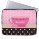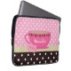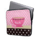 Eine girly rosa und braune Polkapunktmuster Laptop-Hülse 13 Zoll mit einem niedlichen rosa Teacup trimmte mit einer trendy Herzgrenze und einem hübschen rosa Band, das in einem Bogen auf dem Griff gebunden wurde. Personifizieren Sie, indem Sie Ihren Namen addieren. Vervollkommnen Sie Geschenk für das girly Mädchen, das Liebe, ein Spaßtee-Party zu holen wurde, gleichgültig wo, das sie geht!
