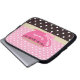 Eine girly rosa und braune Polkapunktmuster Laptop-Hülse 10 Zoll mit einem niedlichen rosa Teacup trimmte mit einer trendy Herzgrenze und einem hübschen rosa Band, das in einem Bogen auf dem Griff gebunden wurde. Personifizieren Sie, indem Sie Ihren Namen addieren. Vervollkommnen Sie Geschenk für das girly Mädchen, das Liebe, ein Spaßtee-Party zu holen wurde, gleichgültig wo, das sie geht!