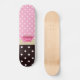 Ein girly rosa und brauner Polkapunktmuster Skateboard mit einem niedlichen rosa Teacup trimmte mit einer trendy Herzgrenze und einem hübschen rosa Band, das in einem Bogen auf dem Griff gebunden wurde. Personifizieren Sie, indem Sie Ihren Namen addieren. Vervollkommnen Sie Geschenk für das girly Mädchen, das Liebe, ein Spaßtee-Party zu holen wurde, gleichgültig wo, das sie geht!