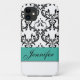 GIRLY TÜRKIS-SCHWARZ-DAMAST IHR NAME Case-Mate iPhone HÜLLE