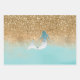 Giro Aqua Watercolor Gold Glitzer Meerjungfrau Geschenkpapier Set