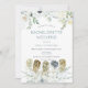 Schöne weiße Blumen und Eukalyptus-Blätter schmücken den oberen und unteren Bereich der Vorderseite und auf der links Seite auf der Rückseite. Eine Abbildung der Rückseite einer Braut und der Frisuren ihrer Brautjungfrauen ist unten. Die Typografie auf beiden Seiten ist einfach und elegant und leicht personalisiert zu den Details Ihres Junggeselinnen-Abschieds. Ihre Wochenendreise ist auf der Rückseite. Sie können die Hintergrundfarben auf beiden Seiten, wenn Sie möchten, sowie den Text auf eine andere Farbe ändern, wenn Sie dies wünschen, über die Option Klicken Sie auf Weitere Einstellungen.