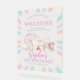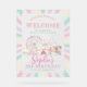 Dieses Pastellfarben-Geburtstagsgeschenk mit einem skurrilen Karneval-Thema eignet sich perfekt zum Geburtstag eines jeden Kindes. Es lautet: "KOMME EINS, KOMME ALLE! WILLKOMMEN BEI DER BESTEN GEBURTSTAGSPARTY ON EARTH!" In einem spielerischen Zirkus-Schriftart oben, mit lebhaften Abbildungen eines Riesenrads, Zirkuszelt, Ballons und Karussell in sanften Pastelltönen. Im Mittelpunkt steht der Name des Kindes in einem eleganten Skript, gefolgt vom anpassbaren "1. BIRTHDAY" in fett gedruckten Buchstaben, sowie dem anpassbaren Datum und der Lage am unteren Ende. Die mit pastellfarbenen Streifen verzierte Grenze verstärkt die festliche und fröhliche Atmosphäre des Designs.