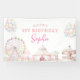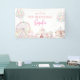 Dieses pastellfarbene Geburtstagsbanner ist mit einem köstlichen Karneval-Thema ausgestattet, das perfekt zum Geburtstag eines jeden Kindes geeignet ist. Es liest "HAPPY 1ST BIRTHDAY" in einem charmanten Zirkus-Schriftart an der Spitze, mit dem Kindernamen in einem eleganten Drehbuch unten. Die Illustrationen beinhalten ein Riesenrad, Zirkuszelt, Ballons und Karussell, alle in sanften Pastelltönen dargestellt. Das Design ist festlich und skurril, es ist ideal, um eine fröhliche und unvergessliche Geburtstagsatmosphäre zu schaffen. Der "1. GEBURTstag" und der Name sind individuell einstellbar, sodass die Personalisierung jedes Alters und Kindernamens Anzug kann.
