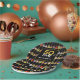 Behalt dein Party mit diesem personalisierten 50. Geburtstag Party Papier Teller, entworfen, um in echter Rock 'n Roll Mode zu feiern. Diese Untersetzer sind mit einem fett-farbigen Gitarrenmuster-Set auf schwarzem Hintergrund ausgestattet und zeigen eine Mischung aus dynamischer Gitarrenkunst. Von der feurigen E-Gitarre mit rotem Pickguard- und Flammenmuster über die pulsierende semiakustische Gitarre bis hin zur hochgradig psychedelischen klassischen akustischen Gitarre, jedes Design-Element bricht mit Energie aus. Die personalisierte moderne Typografie in Schwarz und Gold fügt eine coole, zeitgenössische Drehung hinzu, die das Wesen des Felsens perfekt einprägt. Diese maßgeschneiderten Teller sind ideal für Musikfans, Gitarristen, Musiker und Party mit Livemusik. Sie sind das perfekte Party um fünfzig mit Stil und Flair zu feiern. Dieses Stück, das im Sinne der Musik entworfen wurde, ehrt den Power und die Leidenschaft der Gitarren und bietet eine lustige Möglichkeit, Ihre Liebe für das Instrument zu präsentieren. Die einfach zu bedienende Vorlage macht die Anpassung einfach, sodass Sie diese Papierfräsen personalisieren und ein ausgefallenes Party-Dekor kreieren können. Das originelle Kunstwerk der Künstlerin Catherine Sweetman erweckt dieses lebendige Design zum Leben und sorgt dafür, dass Ihr 50. Geburtstag genauso unvergesslich ist wie die Musik selbst.