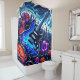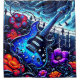 Dieser Duschvorhang hat ein Gitarrendesign.