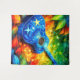 Dieser Wandteppich hat ein Gitarrenwerk darauf.