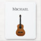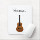 Music monogram Maus Pad, mit einem akustischen Gitarrenbild-Set auf weißem Hintergrund. Mit schwarz anpassbarer Schrift können Sie mit Ihrem eigenen Namen personalisieren. Dieses einfache Element ist ideal, um Ihrem Zuhause-Büro eine musikalische Touch hinzuzufügen.