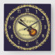 Gitarre ~ Musikalische Scroll ~ Gold/Navy Blue ~ Quadratische Wanduhr