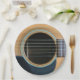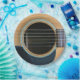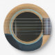 Eine Fotografie des soliden Lochs und der Schnüre auf einer Gitarre.