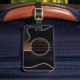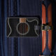 Schließen Sie das Foto eines akustischen Gitarrenklanglochs.