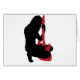 Silhouette eines Mädchens mit einer Gitarre. Mädchen ist im Schwarzen und Gitarre ist im Rot.
