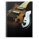 Hartes hinteres Notizbuch, achtzig zeichnete Seiten des Qualitätspapiers. Mit Ringmappe. Der vordere Entwurf ist in einer glänzenden Vintagen Gitarre auf einem schwarzen Hintergrund.