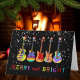Gitarre Weihnachten Funny Psychedelic Festive Music Merry und Helle Grüße Karte. Akustische Gitarren, E-Gitarren und halbgenaue Gitarren in psychedelisch bunten Designs mit einer lustigen Weihnachtsmannmütze mit Schneeflocken auf schwarzem Hintergrund. Diese lustige festliche Karte ist anpassbar und ein guter Weg, um Weihnachtsjubeln mit Musikern, Gitarristen und Musikliebhabern zu verbreiten. Gitarre psychedelische Kunst von Künstlerin Catherine Sweetman