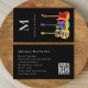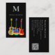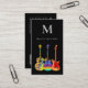 Diese lebendige Visitenkarte bietet psychedelische akustische, semi-akustische und elektrische Gitarren in einer beeindruckenden Farbpalette vor einem auffallenden schwarzen Hintergrund. Diese Karte ist komplett mit einem personalisierten Monogramm, Ihrem Namen, Kontaktdaten und einem komfortablen QR-Code auf der Website, die alle in stilvoller Typografie dargestellt sind, die perfekte coole und farbenfrohe Einführung für GitarristInnen, GitarristenInnen, berufliche MusikerInnen, EntertainerInnen und MusiklehrerInnen. Original-Kunstwerk der Künstlerin Catherine Sweetman.