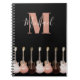 Das perfekte rustikale Design für den coolen Rockstar in Ihrem Leben, indem Sie einfach einen Namen und Monogramm Initial. Drei handgezeichnete semiakustische, elektrische Gitarrenabbildungen im rustikalen Stil, die sich von weißen, hellbraunen und dunkelbraunen Tönen abheben und das Muster auf schwarzem Hintergrund wiederholen. Ideal für kreative musikalische Träume. Ideal für Musikliebhaber, besonders Gitarristen. Rustikale Musikinstrumentenkunst von Catherine Sweetman