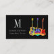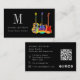 Moderner Stil Gitarren Lehrer Custom Website QR Code mit Social Media Icons Visitenkarte. Dieses Visitenkartendesign vereint lebendige Kunst und berufliche Vernetzung für Musiker. Mit einer psychedelischen akustischen Gitarre, semiakustischer Gitarre und E-Gitarre in fetten, hellen Farben vor einem auffallenden schwarzen Hintergrund bietet es einen einzigartigen, auffälligen Look. Die Karte enthält ein personalisiertes Monogramm, das jedem Benutzer eine Touch Individualität hinzufügt. Es ist ein ideales Werkzeug für GitarristInnen, MusiklehrerInnen, EntertainerInnen und berufliche MusikerInnen, die wollte, sich zu erheben und bleibende Eindrücke zu machen. Die einfach zu bedienende Vorlage ermöglicht die nahtlose Integration von wichtigen Kontaktdaten, einem QR-Code der Website und Social-Media-Icons, um sicherzustellen, dass alle wichtigen Links leicht zugänglich sind. Diese Karte wurde von der Künstlerin Catherine Sweetman entworfen und verbindet modernen Stil mit Funktionalität. Sie eignet sich somit hervorragend für geschäftliche Netzwerke in der Musikindustrie.