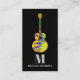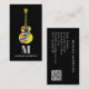 Farbenfrohe psychedelische akustische Gitarre auf schwarzem Hintergrund mit Personalisiertem Monogramm-Namen und QR-Code. Fügen Sie Ihre eigenen Daten mit der Vorlage hinzu, um eine berufliche Visitenkarte zu erstellen. Das perfekte Design für Gitarristen, Musiker und Musiklehrer. Einfache klassische Originalkunstwerke und Typografie der Künstlerin Catherine Sweetman