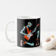 Ein Robotercharakter spielt energisch eine E-Gitarre und trägt dabei eine schwarze Jacke, Sneakers und die Gitarre, die direkt mit seinem Kopf verbunden ist. Helle Farben heben Gitarre und Schuhe hervor und sorgen für ein dynamisches Ambiente.