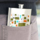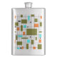 Retro Gitter Muster mit Blöcken in Olivgrün, Orange und Aqua.
