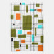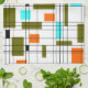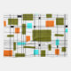 Retro Gitter Muster mit Blöcken in Olivgrün, Orange und Aqua.