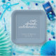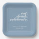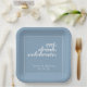 Hübsches, modernes, minimalistisches und trendiges Hochzeitsdesign für Party-Teller und Servietten mit gletscherblauem Hintergrund mit weißen, anpassbaren Textblöcken in modernen Schriftart