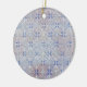 This ornament features a soft, frosty snowflake pattern arranged in a beautiful repeating lattice. Shades of icy blue, winter white, and soft beige blend together to create a calm, peaceful design with a vintage wintry feel. Each snowflake sits neatly in its own place, forming a delicate geometric tapestry that brings to mind frosted windows, early morning snow, and quiet winter landscapes.