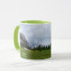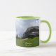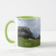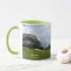 Die massive Form eines Berges steigt über eine Alm im Glacier Nationalpark. Schneeflecken verweilen im Sommer. Wolken billigen sich über dem Himmel. Die Wiese ist voll von kleinen gelben Blumen, die als Gletscherlililien bekannt sind. Diese wunderschönen Wildblumen sind eine wichtige Nahrungsquelle für die Bergwelt. Bringen Sie diese schöne Szene von den Montana Rockies zu Ihrer Zuhause und genießen Sie sie mit Ihrem Lieblingsdrink. Diese landschaftliche Tasse hat auf der anderen Seite eine umgekehrte Version des gleichen Landschafts-Fotos. Die Fotos sind miteinander verbunden, um ein umgehendes Bild zu erstellen. Auf jeder Seite erscheint der Text "Glacier National Park" in einer gelben Farbe, die der Farbe der Gletscherlilien ähnelt.