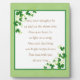 Schöne Tischplatte mit irischem Segen, Kleeblatt-Verzierung und goldenem/grünem Hintergrund : Mögen Ihre Gedanken so froh sein wie die Kleeblätter. Möge dein Herz so hell sein wie ein Lied. Möge Ihnen jeden Tag fröhliche Stunden bringen, das bleibe mit Ihnen das ganze Jahr lang.