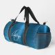Diese personalisierte Duffeltasche hat ein Monogramm und Vornamen in modernen türkis-weiß-Schrift auf einem Glam aquamarinen blauen Imitat gebürstete Metall Hintergrund.