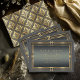 Diese elegante Hochzeitskarte Save the Date ist Teil einer hochmodernen Deko Hochzeitssuite mit luxuriösen Rahmen und aufwändigen, glänzenden Golddetails. Die klassischen Designs strahlen einen glamourösen Vintagen Charme aus, mit einer schwarzen Farbpalette, leuchtendem Gold und warmen Grautönen. Das verzierte Muster auf der Rückseite fügt dieser zeitlosen Karte eine Touch von Raffinesse hinzu. Fügen Sie Ihre Ereignisdetails einfach mit der bereitgestellten Vorlage hinzu. Suchen Sie ID1033 um alle Produkte in dieser Hochzeitssuite zu sehen.