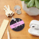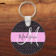 Glam und gürtelschwarz und rosa Metallwabenmuster Bienenmuster Monogramm Name und initialer Schlüsselanhänger. Individuelle Name und Monogramm sind in einem eleganten, mit schwarzweißem Buchstaben versehenen Schrift mit rosa Hintergrund geschrieben. Sie können Textfarbe, Schriftart und Schriftgröße mit der Option Anpassen ändern.