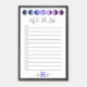 Dieses wunderschöne, einzigartige, glamouröse Design weist oben Phasen des Mondzyklus auf, einschließlich Halbmond, Vollmond, pastellfarben, aquamarin, blau, Lavendel lila und Magentafrosa mit schattigen Bereichen in Grauschwarz, angeordnet in einer auffälligen Reihe auf einem soliden, weißen Hintergrund zum Schreiben. Der Schreibbereich ist von einer klassischen Holzkohle-graue, schwarz gebürstete Metallfolie umgeben. Im unteren Teil befinden sich ein anpassbares Lavendelmonogramm und ein personalisierter Name in eleganter, trendiger dunkelgrauer Schriftzeichen-Typografie für einen coolen handgeschriebenen Look. Unter den Mondphasen erscheint der Text "Meine Aufgabenliste" in einem passenden Skript, gefolgt von 12 Zeilen mit chic-runden Checkboxen, sodass Sie Objekte in Ihrer Aufgabenliste abschreiben und Karo machen können. Das Design wurde an die mittelgroßen, rechteckigen 4" x 6" Notebooks angepasst. Sie finden passende Post-it-Notizen in verschiedenen Größen in derselben Sammlung. Sie können dieses Element personalisieren, indem Sie das Monogramm und den Namen in der Produktvorlage ändern.