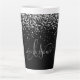 Glam Black Silver Glitzer Elegant Monogram Latte Tasse. Dieses schicke Design aus Latte-Tasse mit elegantem silberfarbenem Glitzer auf schwarzem Hintergrund ist einfach zu personalisieren. Das Design enthält Ihr handgeschriebenes Skriptmonogramm mit hübschen Wirbel und Ihrem Namen.
