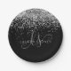 Glam Black Silver Glitzer Monogram Name Pappteller