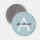 Glam Blue Silver Glitzer Glitzern Monogram Name Magnet